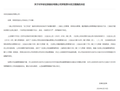 值得一提的是,今年2月18日,安徽证监局查出华安证券存在研究报告、管理、业务过程持续督导不到位等三方面的问题,对华安证券采取责令改正措施,并将该券商记入证券期货市场诚信档案。