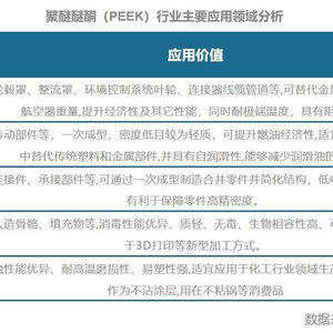 从汽车功能工业的轻量化、智能化到IT制造业的高精度、高性能制造,再到医疗分析器械的精准度、安全使用,PEEK材料都在发挥着不可或缺的作用。