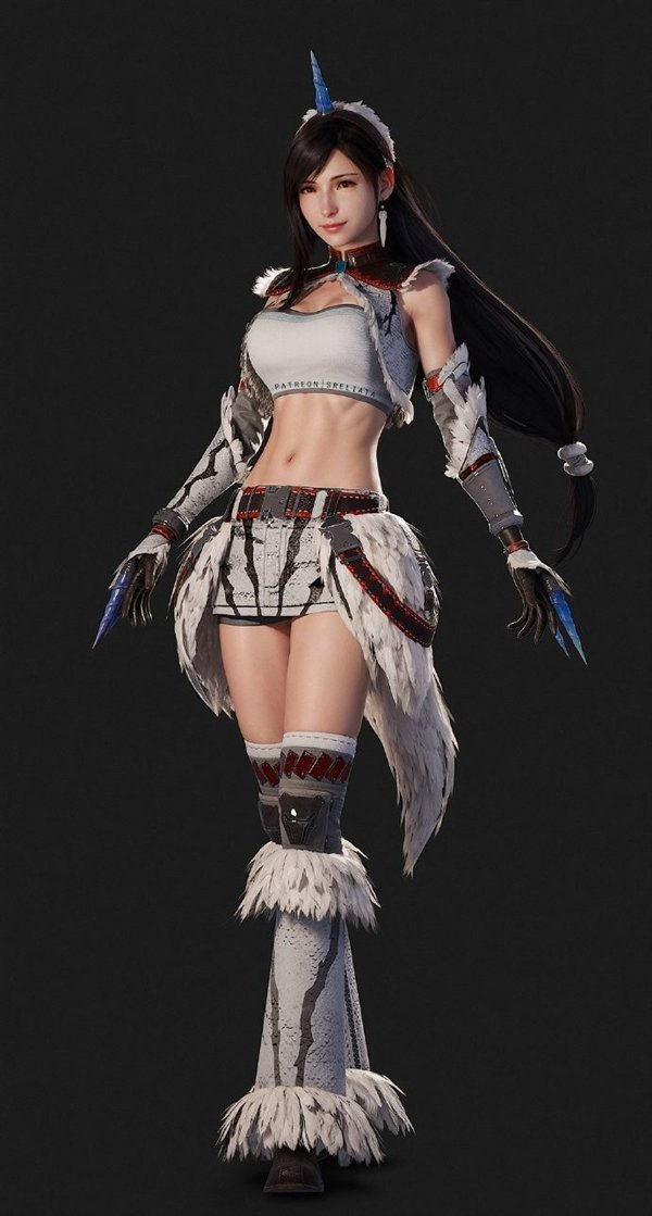 蒂法具备女神该有的形象和特征,天使的容貌,魔鬼的身材,小鸟般的声音,柳叶眉、大眼睛、薄嘴唇。