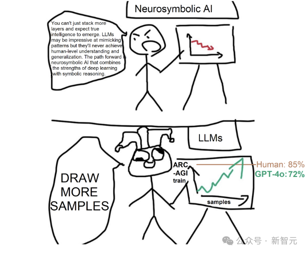 可是这周二,ARC-AGI 基准无法被挑战的神话被 GPT-4o 撼动了!GPT-4o 以在公共测试集 50%、在训练集的保留子集 71% 的准确率成为了新的 SOTA!