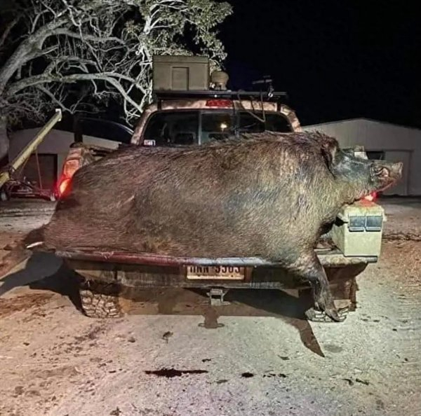 一般体型是120-250磅,加拿大成年超级猪体重普遍是500磅,个别的已经达到了661 磅以上,差不多300公斤,是2022年美国多个地区采集的最大野猪数据的2倍。