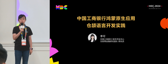 冯新宇教授介绍完毕后,中国工商银行的李可研究员介绍了该机构对仓颉语言的开发实践。