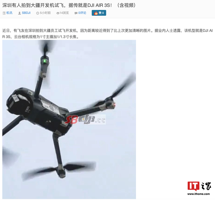 大疆 DJI Air 3S 航拍无人机谍照曝光,有望换用 1 英寸主摄