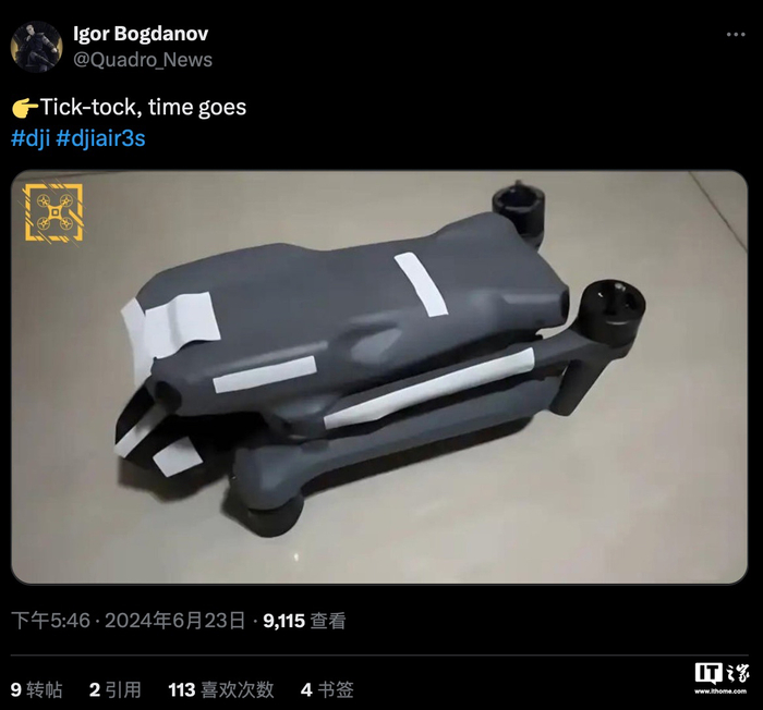 IT之家 6 月 24 日消息,消息源 Igor Bogdanov 今天曝光了大疆 DJI Air 3S 航拍无人机的谍照,综合此前 SBDJI 网站爆料的“疑似实拍图”,这款无人机延续现款 Air 3 的双摄系统,据称主要在传感器尺寸方面有所改进(主摄换用 1 英寸底)。