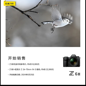 IT之家 6 月 25 日消息,尼康 Z6 III 全画幅相机国行版今晚 8 点正式发售,官方价 18999 元。