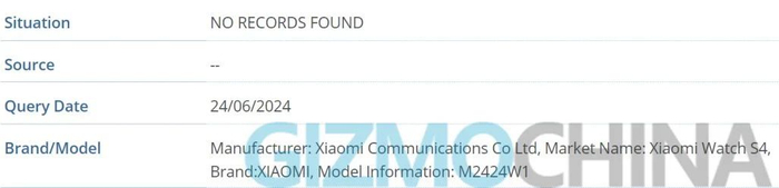 IT之家 6 月 26 日消息,科技媒体 GizmoChina 挖掘 GSMA IMEI 数据库,发现了小米 Watch S4 的踪迹,其型号为“M2424W1”,目前尚不清楚具体规格信息。