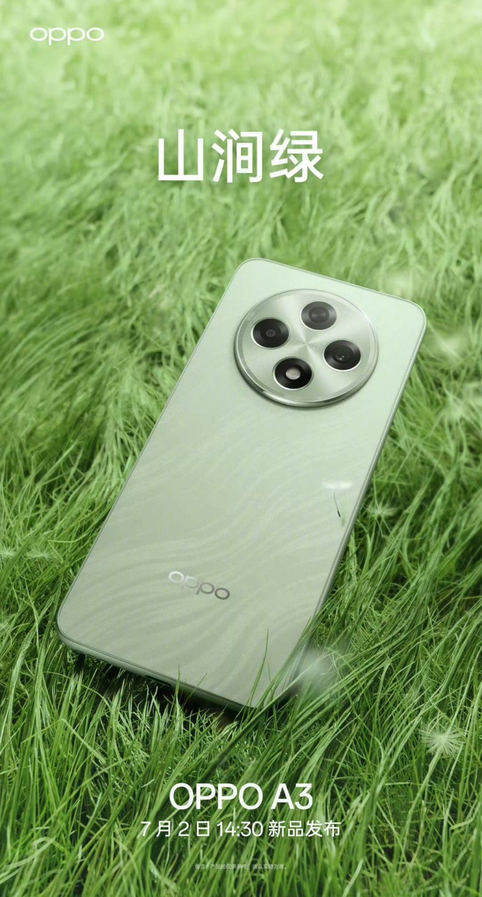 IT之家 6 月 27 日消息,OPPO A3“耐用战神直屏版”手机今日官宣,将于 7 月 2 日 14:30 发布,现已上架京东预约。