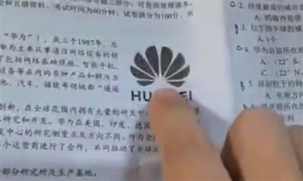 初中地理试卷出现多个涉华为题目 官方回应:中国代表性企业之一