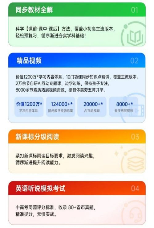 C70 Pro紧密围绕新课标设计,实现小初高10门全学科辅导,无缝对接学校教学内容。通过科学设计的【课前-课中-课后】学习方法,解决了孩子同步课程学习的刚需,配合价值超过1200万元的自研AI互动专题课及素质拓展视频资源,全方位提升孩子的学科核心素养。无论是巩固学科基础,还是提升综合素质,C70 Pro都能轻松应对。