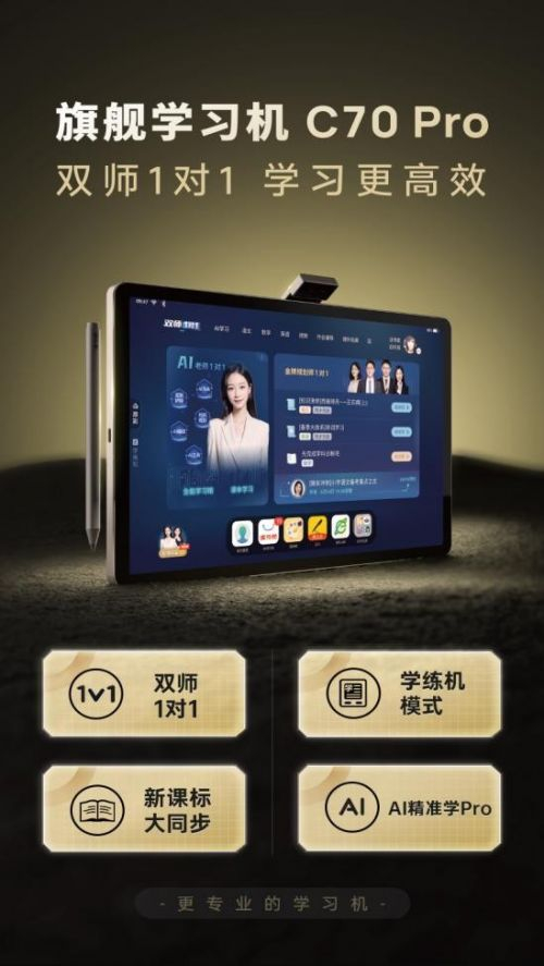 与传统学习机相比,C70 Pro最大的亮点在于其“双师1对1”的教学模式,帮助学生打造个性化学习方案。在这一模式下,AI老师与金牌规划师共同助力孩子的学习旅程。AI老师提供7×24小时的智慧伴学,全方位覆盖小初高全部学科;而清北金牌规划师则从诊断规划、直播分享、难题答疑、考前密训、错题周清到21天督学营六大维度,为孩子量身定制专属的学习计划,确保学习效率最大化。这种人工智能与人类智慧的完美结合,实现了1+1>2的学习效果,让学习更加高效。