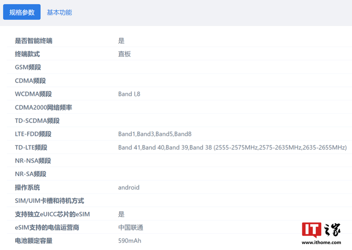 Galaxy Watch 7 Ultra 国行型号 SM-L7050,电池额定容量 590mAh,支持 WCDMA 与 LTE 网络,并支持中国联通 eSIM 独立通信。