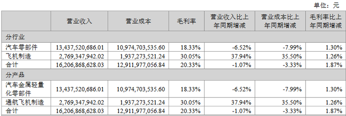 分业务来看,万丰奥威的汽车零部件业务稍显步履踟蹰,但通航飞机制造业务却展现出不错的增长潜力。2023年,万丰奥威的汽车金属轻量化零部件业务实现营收134.38亿元,同比下降6.52%。对此,万丰奥威解释称,去年公司的铝镁合金业务订单充足,销量同比上涨,但受到原材料铝锭、镁锭价格下降以及无锡雄伟出表的影响,导致公司营业收入同比减少。