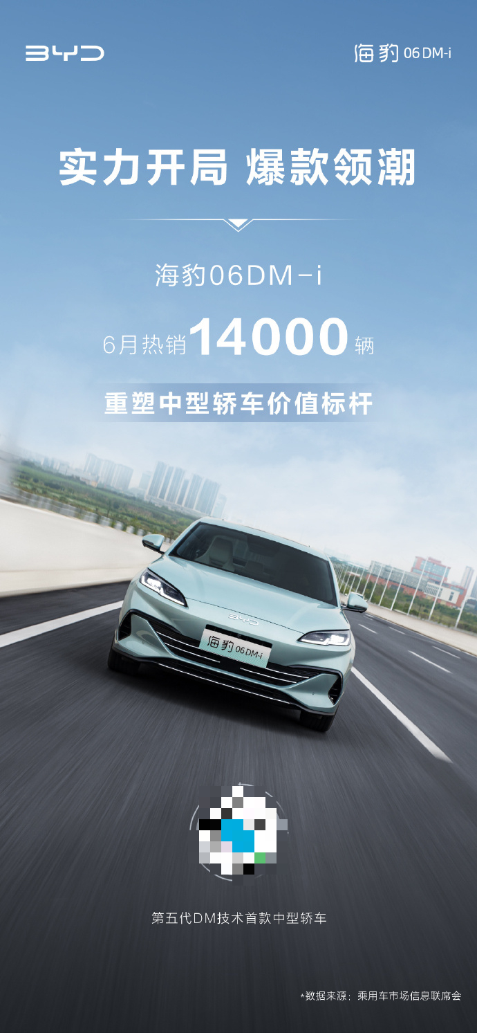9.98 万元起的比亚迪海豹 06 DM-i 汽车 6 月销量 14000 辆,占海豹家族总销量过半份额
