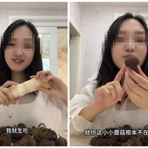 70万粉丝女网红摆拍生吃见手青 平台禁言30天