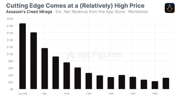 《刺客信条:幻景》的下载量有约12万次,但收入只有约14万美元,而游戏本身售价是50美元,意味着真正花钱买完整版的人其实不到3000人。