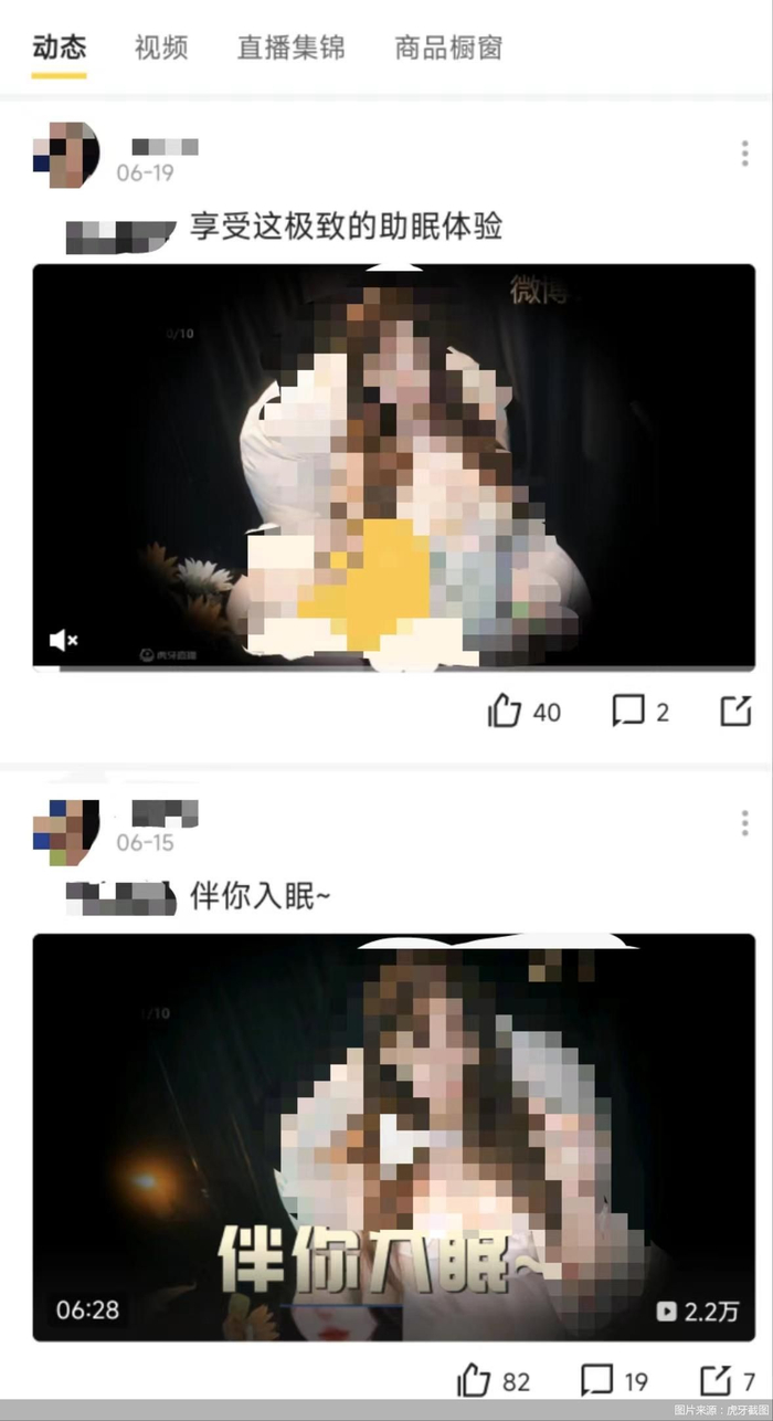 在虎牙搜索关键词“助眠”,却有不少打着助眠的旗号,疑似有色情暗示的内容。个别主播将上述内容定义为哄睡,即一位衣着暴露的女主播出现在画面中,或轻声细语或通过道具发出各种声音。