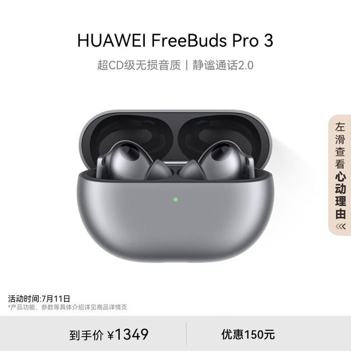 IT之家 7 月 12 日消息,华为官方今日宣布,FreeBuds Pro 3 耳机官方优惠 200 元,原价 1499 元,现价 1299 元。官方暂未透露具体的优惠截止日期。