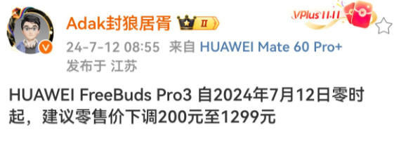 博主 @Adak封狼居胥 透露,该耳机自 2024 年 7 月 12 日零时起,建议零售价下调 200 元至 1299 元。如果爆料属实,这次优惠是永久降价。