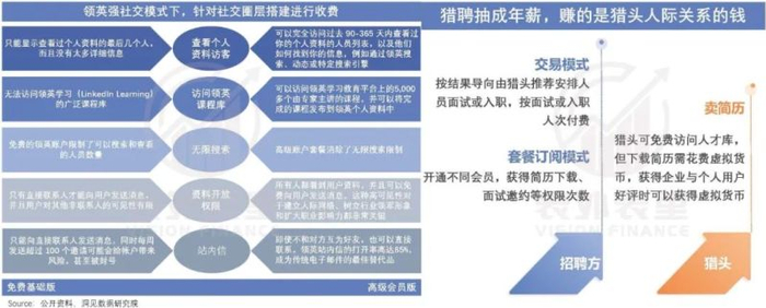 早在2005年,领英就推出了高级订阅服务,做起了“人脉搭建”生意:普通用户只能看到自己的互关好友,“可能认识的人”被隐藏了,而付费用户可以看到“朋友的朋友”,甚至“朋友的朋友的朋友”。(猎聘也是类似的变现逻辑)