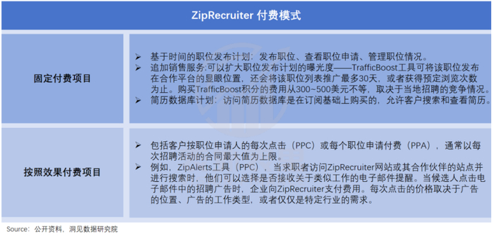 ZipRecruiter基于更高的匹配效率,靠岗位发布、曝光、匹配和点击等收费,日子曾经过得小而美。
