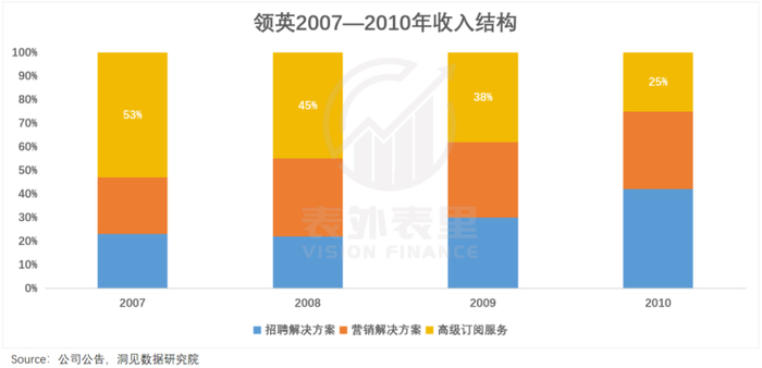 掏钱买人脉的诱惑下,截止到2007年,领英高级订阅服务收入占到整体营收的53%。