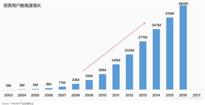在领英崛起后,Monster在美国的总求职流量份额,从2011年的25.6%进一步下降到2016年的9.9%,而领英则开启了用户数高速增长时代。