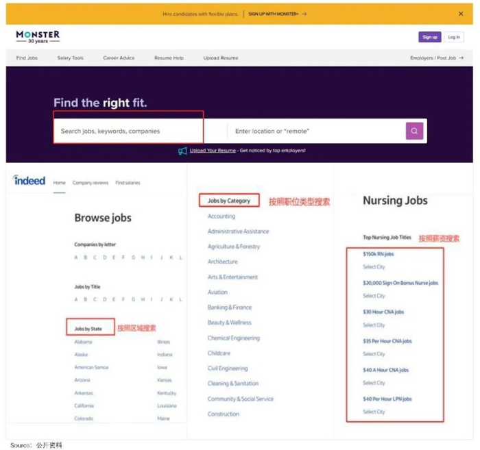 这样一来,于Monster是增加了引流渠道,对Indeed而言,平台上可供挑选的岗位不但增多,甚至可以进行行业、地区和薪资等多个维度的搜索,“一站式”体验感拉满,对求职者的诱惑力蹭蹭上涨。