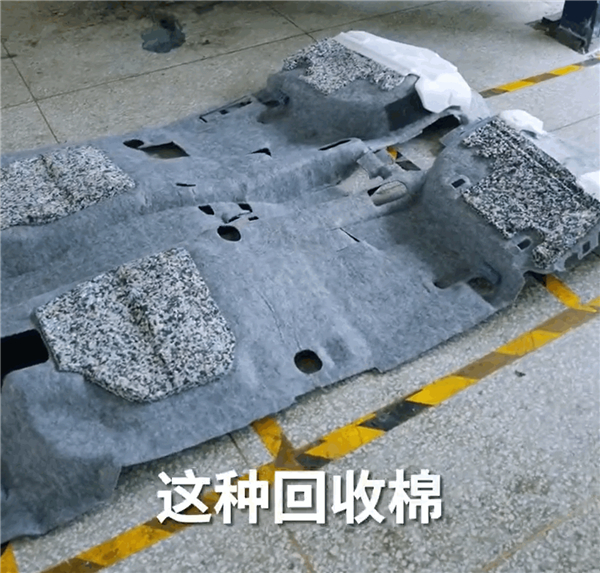 此前他们做过测试,在车里面撒点水,纤维棉干了也就干了;如果用的是回收棉的话,在干了之后会产生比较刺鼻的臭味,不仅仅影响心情,还影响身心健康。
