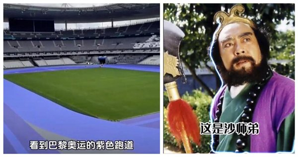 7月24日消息,据媒体报道,巴黎奥运会田径跑道涂成紫色,有网友表示,这跟《西游记》里的沙僧撞色了,还有网友说,原来沙师弟一直走在时尚前沿。