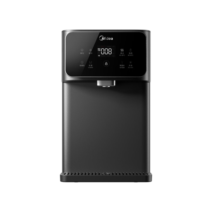此外,该产品采用智能 AI 芯片控制动态加热,40-99℃C 温度区间精确控温,App 无极调节,±50ml 水量可调,± 1℃水温控制,支持冰水、沸水、常温水多档出水模式。连接美的美居 App,可随时查看实时水质、用水状态、线上一键购芯等。