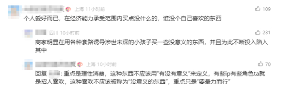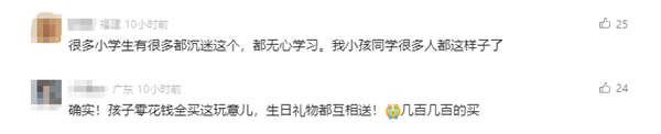 有网友表示:“很多小学生有很多都沉迷这个,都无心学习,我小孩同学很多人都这样子了”“孩子零花钱全买这玩意儿,生日礼物都互相送!几百几百的买”。