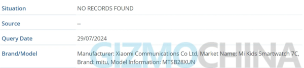 在数据库中,外媒找到了型号为MTSB28XUN的小米儿童智能手表 7C。遗憾的是,目前仅有这一个型号信息,其他详细规格尚不得而知。