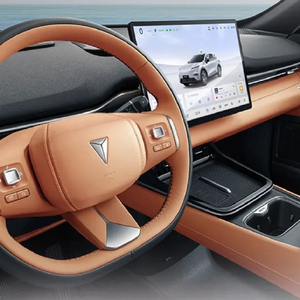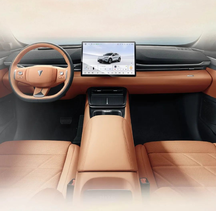 从官方公布的内饰图来看,深蓝 S05 汽车采用无仪表盘设计,预计将使用大尺寸 HUD 代替,配备三幅式多功能方向盘,中控屏采用悬浮式设计;中控台配有垂直杯架和手机托盘,预计将提供无线充电功能