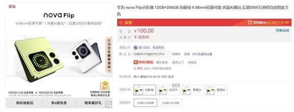 华为nova Flip开启预约:标配12GB内存 四款配色