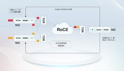 拥塞控制方面,发送端基于接收端发送的Credit、ACK/NACK、RTT等信息,通过调整滑动窗口方式控制发送速率。在负载均衡方面,发送端选择适当的熵值,当反馈数据包表明与给定熵相关的路径拥塞时,修改熵值,交换机根据熵值进行逐包负载均衡,根据拥塞状态反馈ECN,接收端侧进行报文重组。