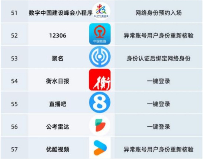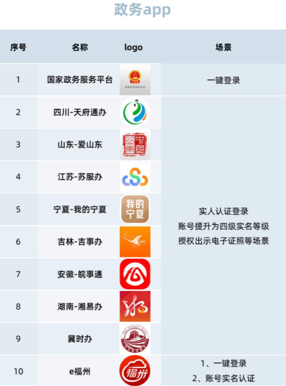 目前,国家网络身份认证公共服务正处于试点阶段,已上线试点 App 和场景共 67 个,包括部分政务 App 和互联网 App,如国家政务服务平台、中国铁路 12306、淘宝、微信、小红书、QQ 等,IT之家附官方支持名单如下:
