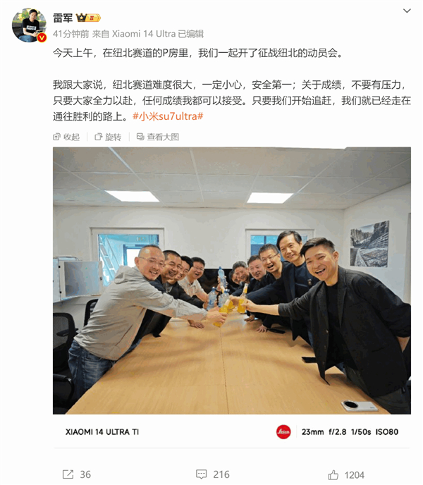 而今日下午,雷军又发文表示,他们一行人上午在纽北赛道的P房里,一起开了征战纽北的动员会。