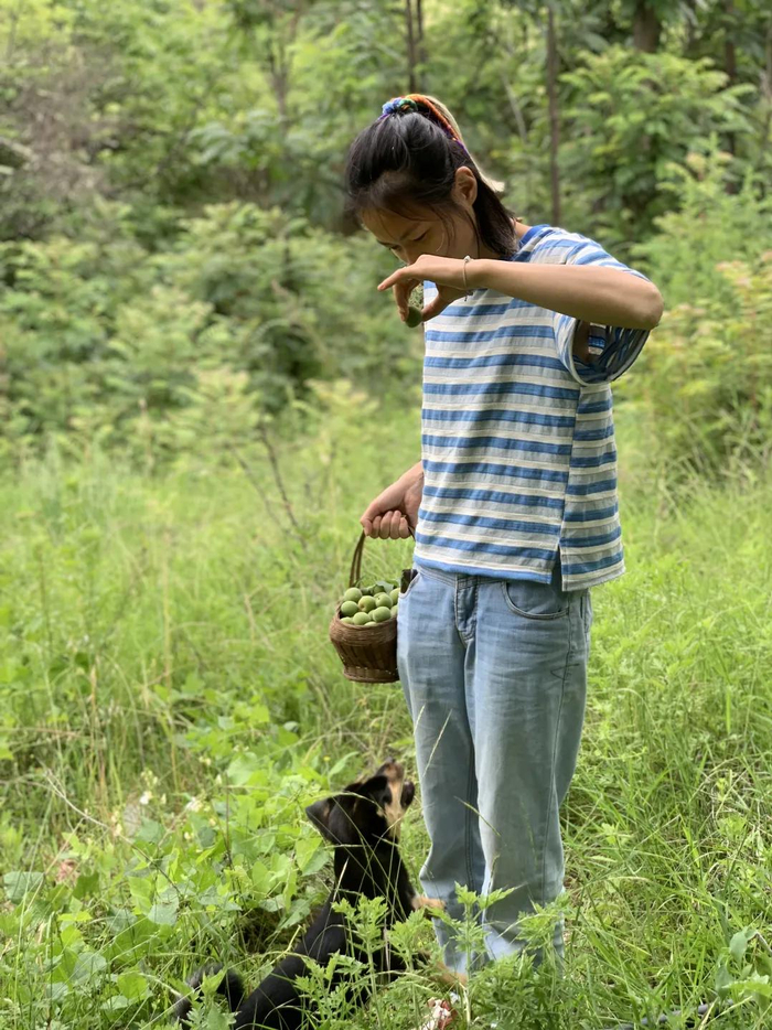 家门口自己种植的有机蔬果可以满足大部分的生活所需,所需要的衣物更是大大减少,更喜欢的方式是偶尔买几件纯白的t恤,去山里摘一些好看的叶子回家做植物染。常常也会跟朋友们开玩笑说,“在乡村里生活的日子,感觉钱都花不出去了。”