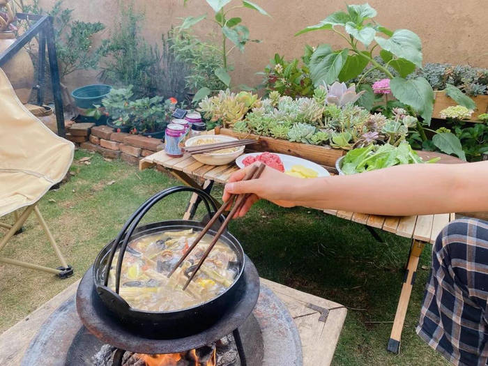 现在是我们改造老院子的第二年,2.0的版本即将出现。从1.0水泥地面、堆满柴和杂物的小院,演变成了爬满了各种植物、有着自然气息的空间,一楼有与本地风俗结合的可以在冬季烤火的室外茶室、也有开放给预约制客人体验的面向稻田的手工工作坊、还有在花草簇拥下享用一顿户外晚宴的庭院。