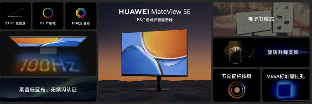 与MateBook GT 14同期亮相的还有华为星跃鼠标GT和华为MateView SE。其中,华为星跃鼠标GT继承了星闪技术,抗干扰能力强,是HUAWEI MateBook GT 14的好搭档;华为MateView SE则采用23.8英寸1080P屏幕,屏占比达92%,是千元档内为数不多支持90% P3和100% sRGB色域的显示器。用户可在华为商城、各大授权电商平台购买。