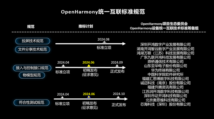 IT之家注意到,研讨会还确定了 OpenHarmony 统一互联系列标准规范相关规划,如下图所示。