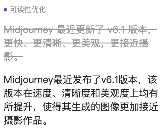 如果文章主体都是 AI 生成的,选择这个功能,等于 AI 自己给自己优化,但恕我直言,没有看出来修改的必要性,AI 只是交个差,通知你它干活了。