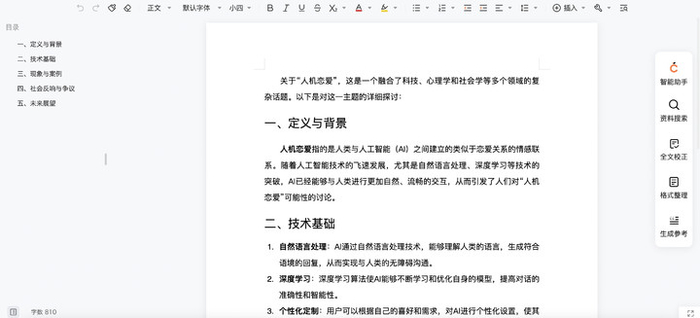 文章生成完毕,打开之后仿佛是一个 AI 版 Word 文档。