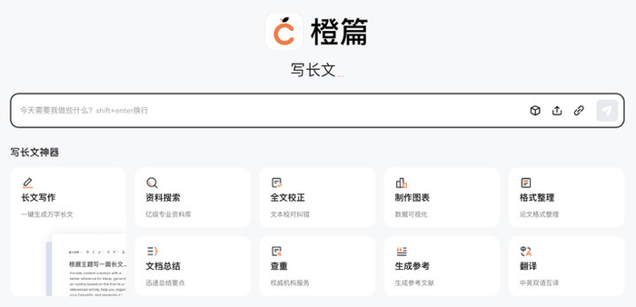 不过,国内有一款 AI 产品,橙篇,专攻长文这个难度系数较高的领域。