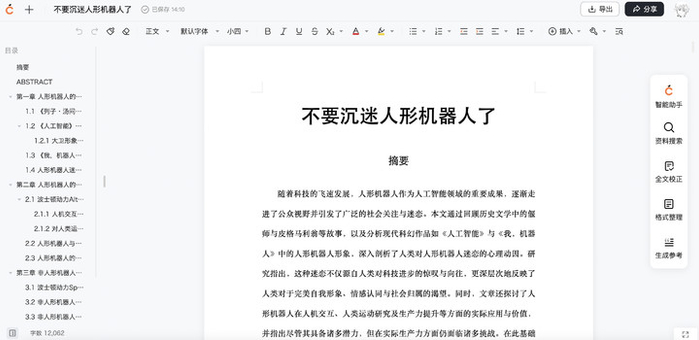 AI 生成的正文有 11300 字,字数就够唬人,形式也很正式,中文版摘要和英文版摘要都端了上来。