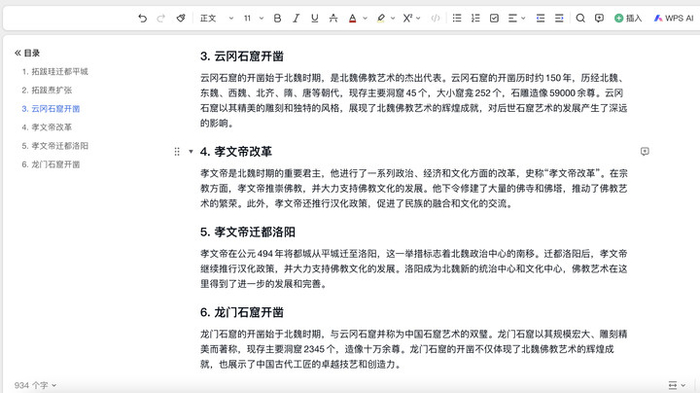 我输入了以下提示词:「分析北魏的佛教文化和艺术,涵盖主要的事件,包括拓跋珪迁都平城、拓跋焘扩张、云冈石窟开凿、孝文帝改革、孝文帝迁都洛阳、龙门石窟开凿等。」