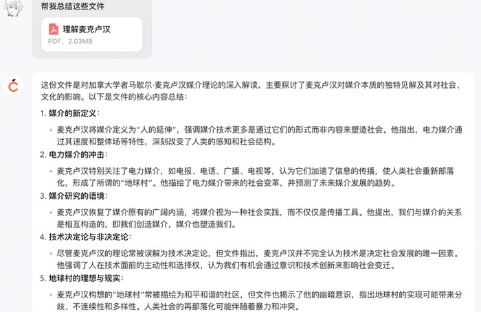 我上传了同一篇关于麦克卢汉的传播学论文,橙篇的总结没有什么废话,但也没有什么亮点。