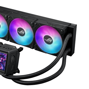 ROG 龙神三代 Extreme 冷头内置主板 VRM 散热风扇、顶部附带 3.5 英寸 LCD 显示屏,该屏幕分辨率为 640×480,刷新率为 60Hz。