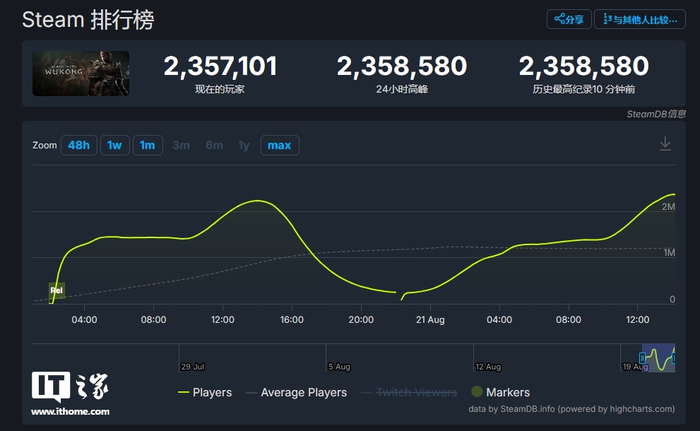 《黑神话:悟空》Steam 同时在线人数达 235 万再创新高