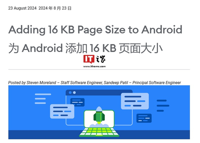 IT之家 8 月 24 日消息,谷歌安卓开发者博客昨日(8 月 23 日)发布博文,表示将为安卓系统添加 16 KB 页面大小(Page Size),用户启用该选项后会增加内存使用量,但可以提高系统性能。